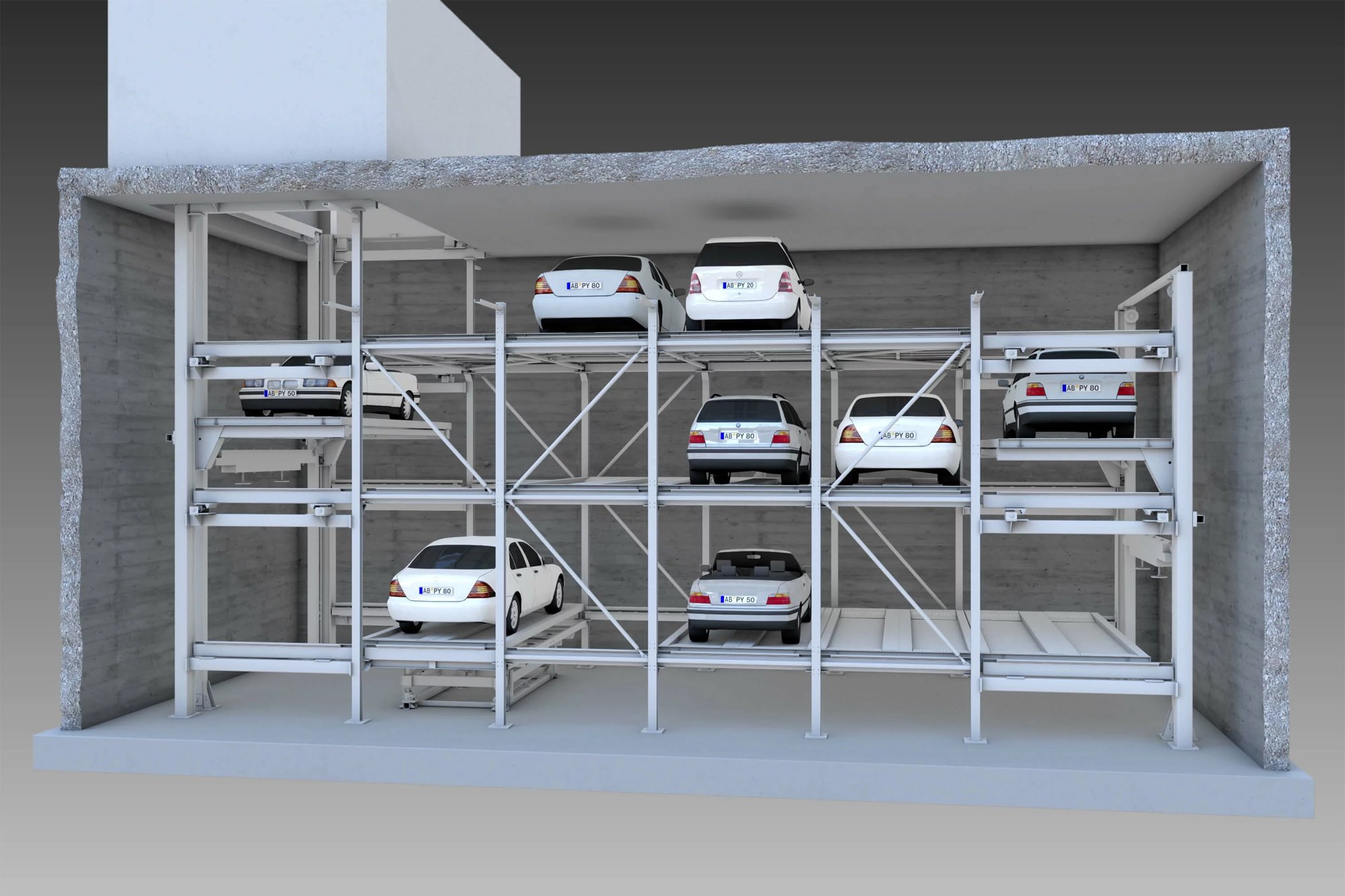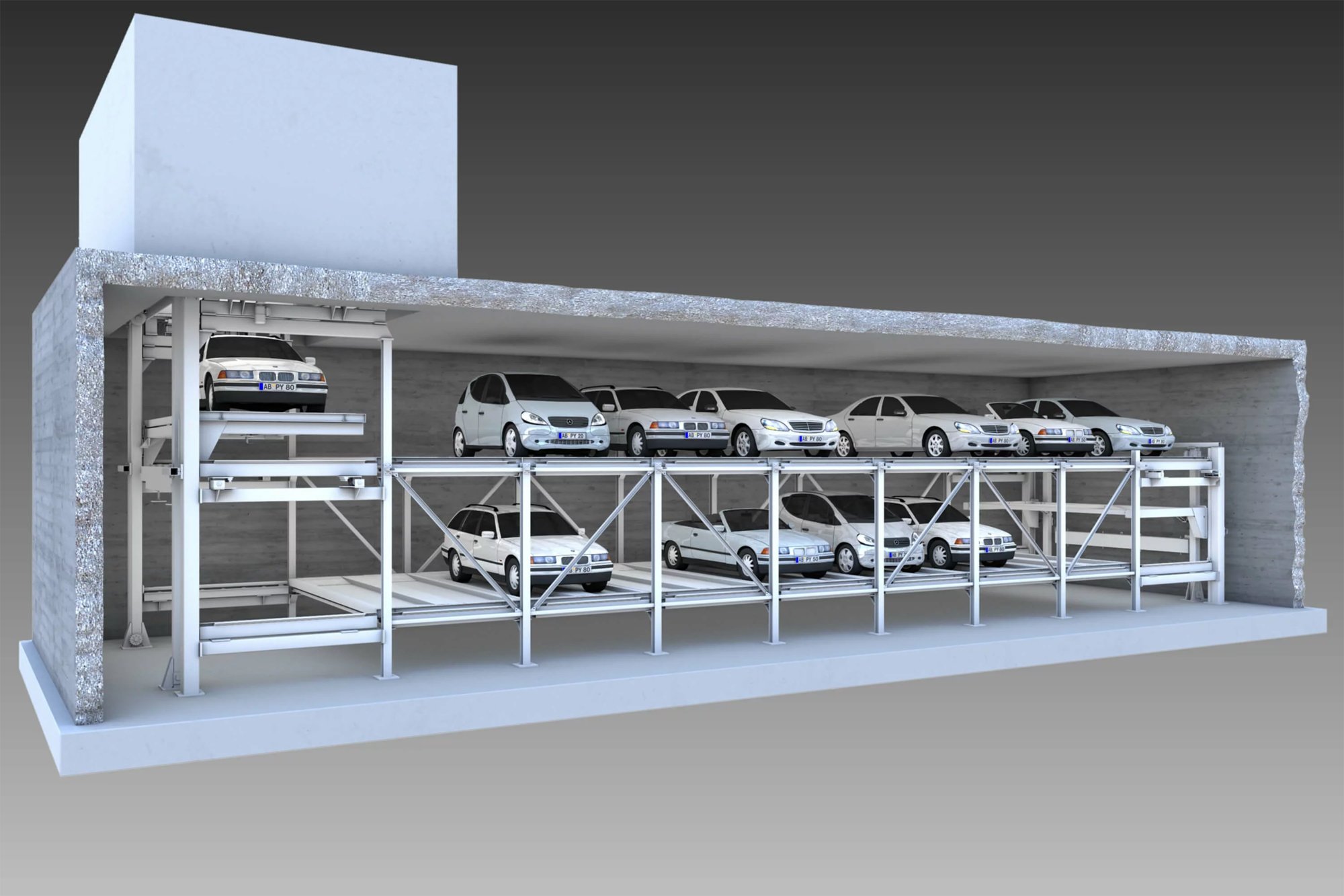 Kompaktni premium potpuno automatski sustav parkiranja koji učinkovito koristi prostor MasterVario F2 stvara do 50 parkirnih mjesta po sustavu.