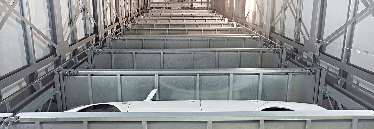 Automatski sustav tornja iz KLAUS Multiparkinga uvijek je pravi izbor ako je na raspolaganju malo prostora. Umjesto da bude širok, sustav tornjeva je ili visok ili dubok - dizalo prevozi vaše vozilo do slobodnog parkirnog mjesta, gdje je sigurno parkirano. S 15 parkirnih razina jedna iznad druge i između 1 do 6 parkirnih mjesta po razini, svaki sustav može osigurati do 50 parkirnih mjesta unutar iznimno male površine.