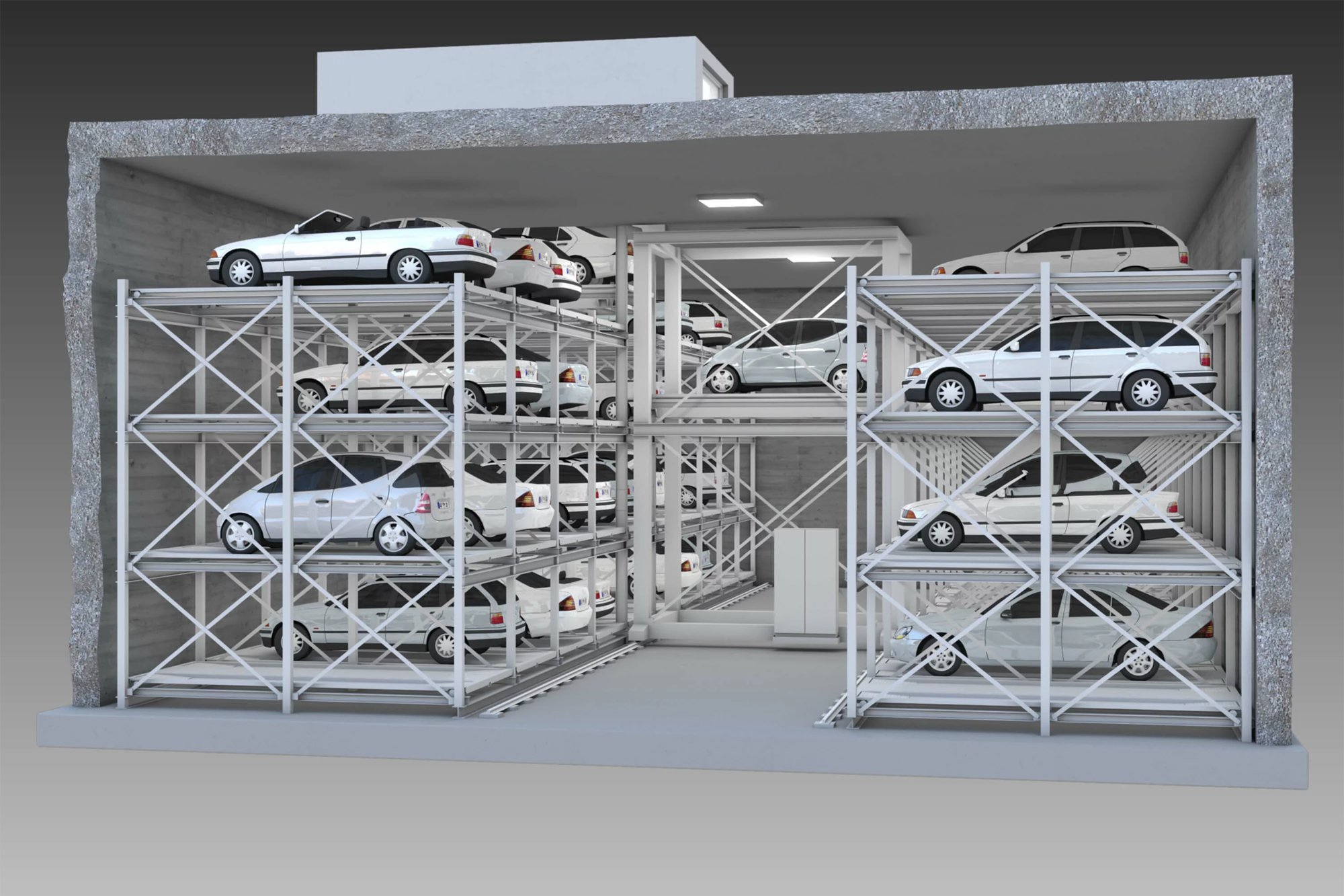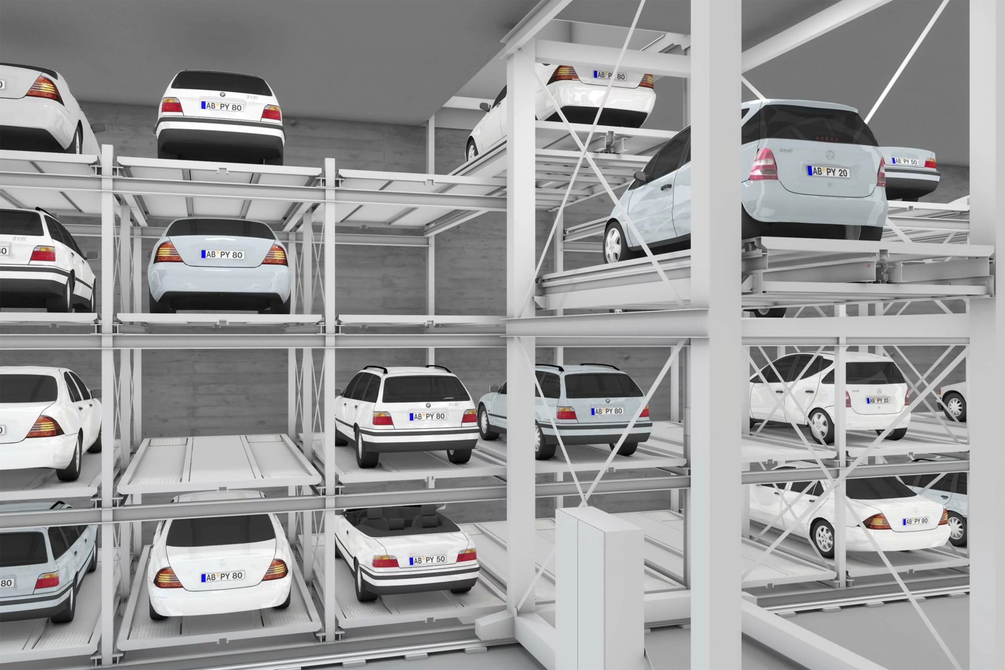 Vrhunski potpuno automatski sustav parkiranja za dugačke i uske prostore. MasterVario R3L – High-bay sustav za automobile s do 60 parkirnih mjesta.