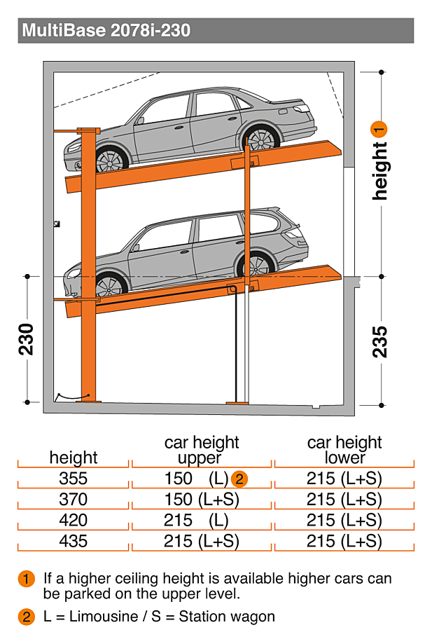 MultiBase 2078i može parkirati vozila veće težine i visine do 215 cm ovisno o odabranom tipu.