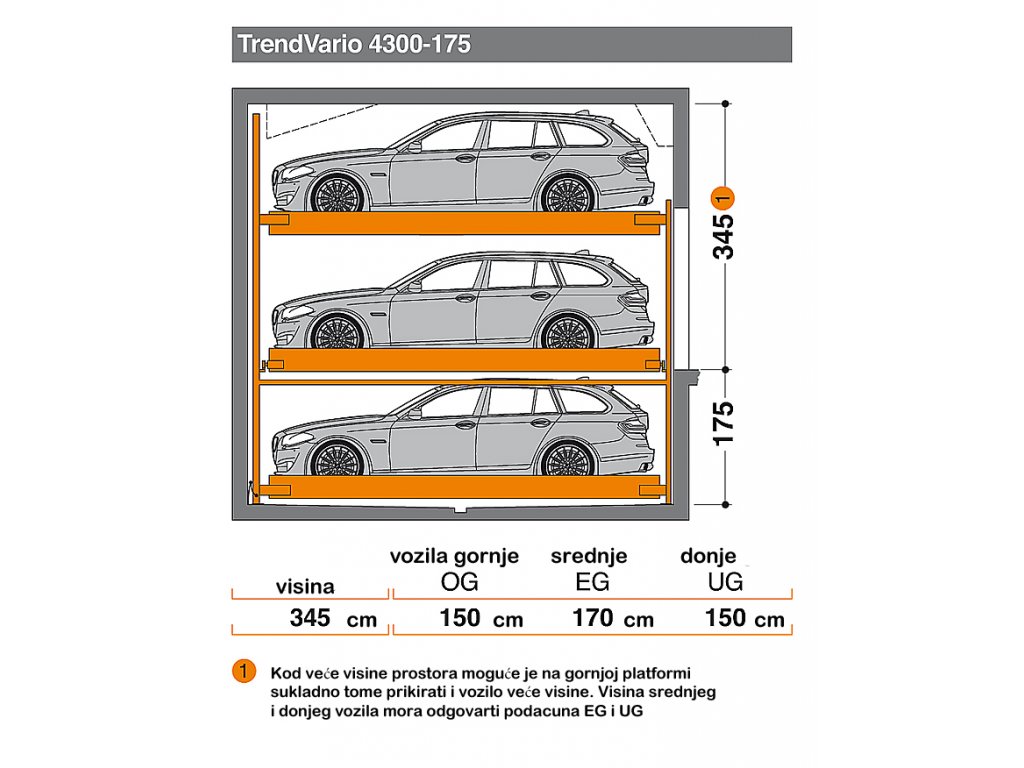 • Nosivost platforme: Standardna izvedba : 2.000 kg, opcionalno 2.600 kg . po parkirnom mjestu,